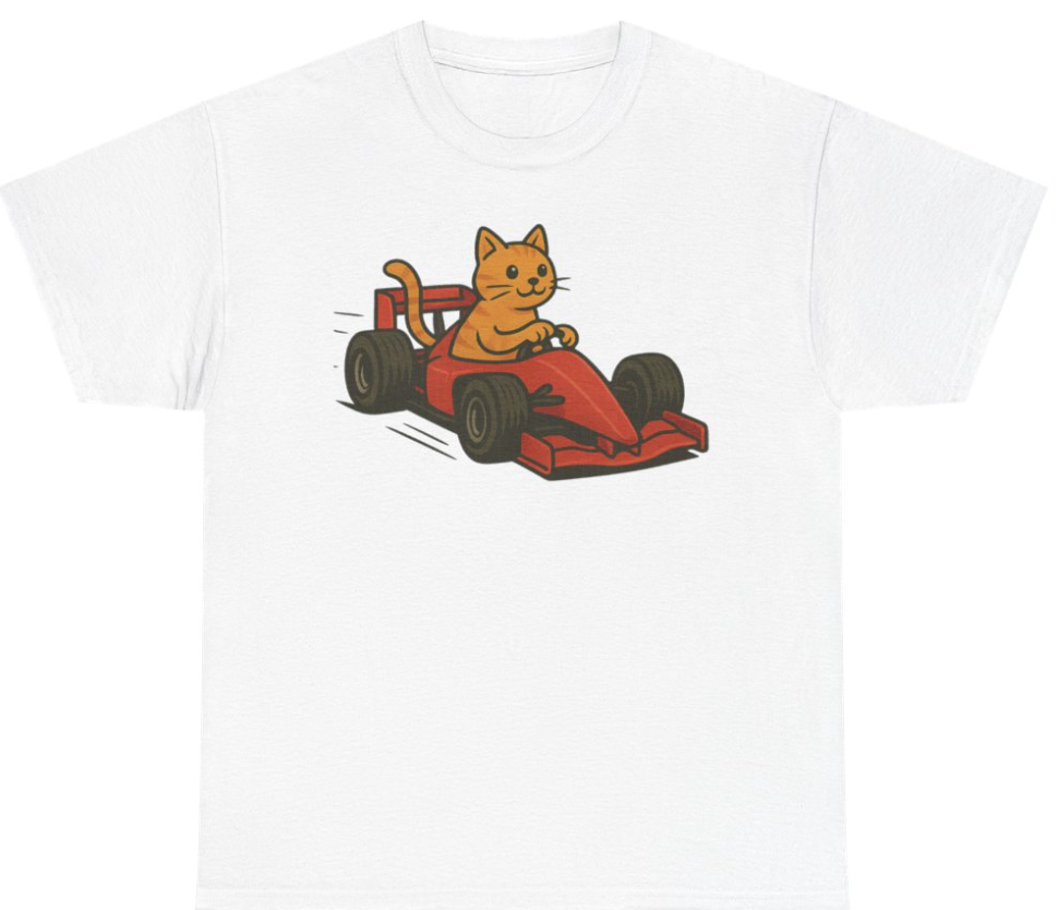 Cat in F1 Car Shirt